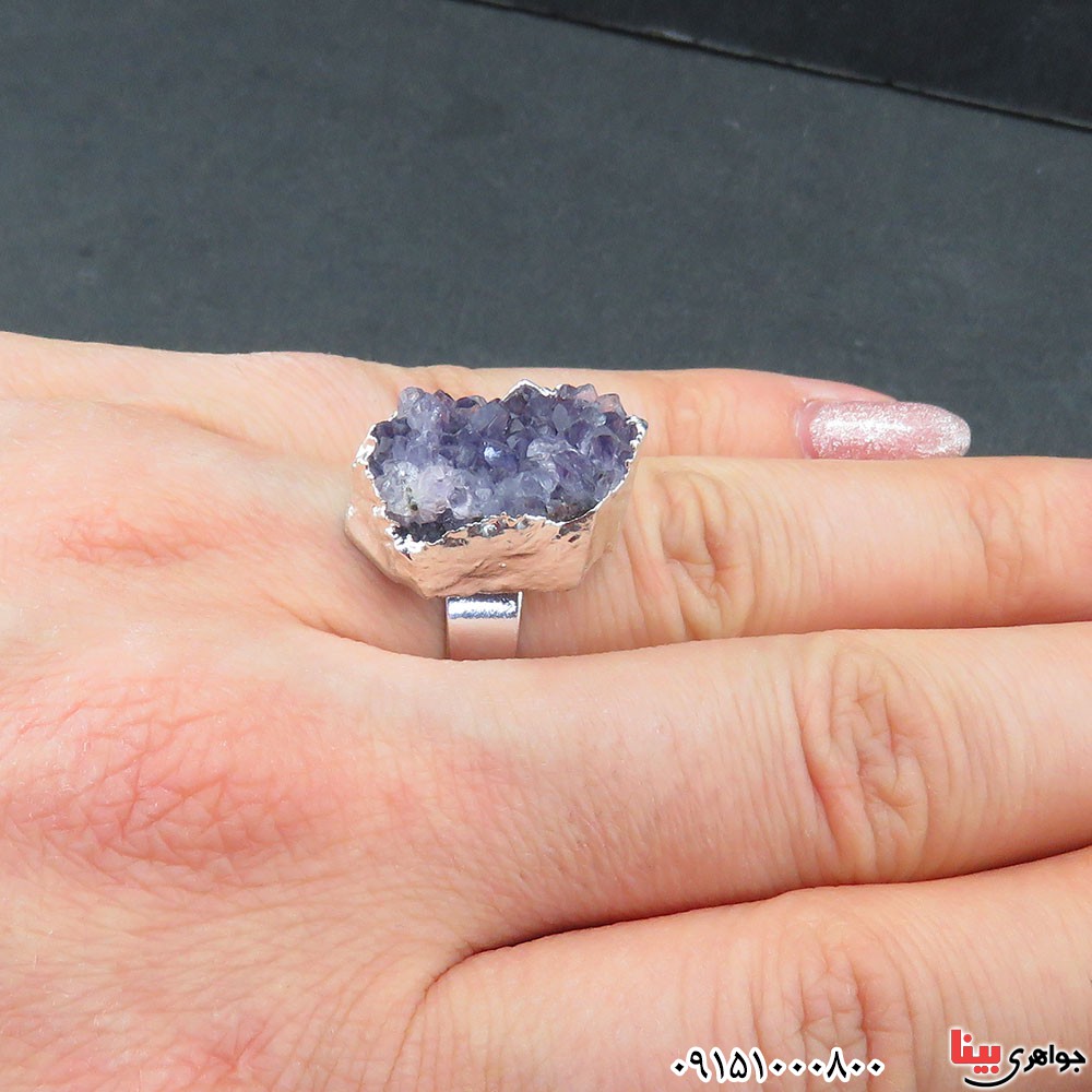 انگشتر آمتیست ژئود زنانه طرح جذاب و بسیار درخشان _کد:33235