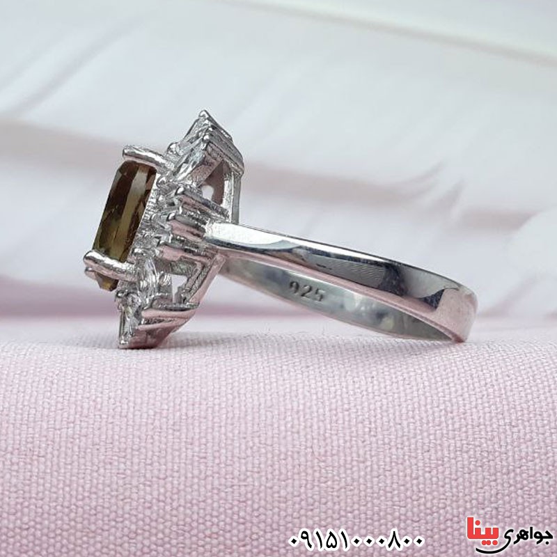 نقره 925 عیار - نگین انگشتر الکساندریت بسیار خاص و منحصر به فرد - سنگ الکساندریت یا سنگ جادویی که همه را فریب می دهد و با هر نوری مخصوصا در نور خورشید سنگ به رنگ های مختلف در می آید - سبز زبرجدی، بنفش آمتیستی، زرد سیترینی و ... - انگشتری خاص و چشمگیر ، فاخر مجلسی - مناسب بانوان خوش سلیقه - روکش رودیوم - نگین این انگشتر الکساندریت، صنعتی سنتاتیک میباشد - نگین انگشتر با تراش برلیانی - وزن: حدود 5/28 گرم - طرح فریم تزئین شده با نگین های درخشان سوئیسی و باگت می باشد - سری: 14020716/8*.. S:1