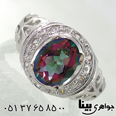 نقره 925 عیار - روکش رادیوم -نگین توپاز هفت رنگ خوشرنگ و شفاف - دور تا دور لبه رکاب انگشتر نگین های سوئیسی چیده شده است - سبک رادیوم لوکس (R-Luxury) - - نقوش زیبای اسلیمی روی رکاب انگشتر کار شده است - سبکی خاص و منحصر به فرد - رکابی زیبا، و شبکه کاری شده - انگشتری زیبا و جذاب مناسب دستان شما - انگشتر توپاز هفت رنگ. سری :940131. t