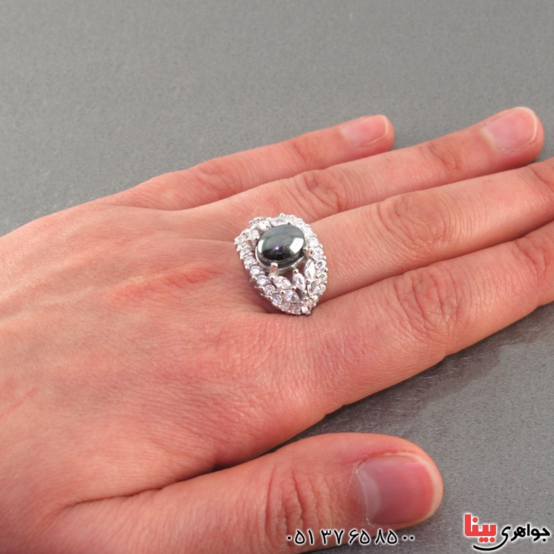 روکش رودیوم - نگین این انگشتر حدید، معدنی اصلی میباشد -