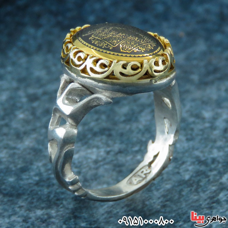 انگشتر حدید طلایی با حکاکی چهار قل _کد:30281