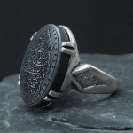 نقره 925 عیار - نگین انگشتر حدید با حکاکی چهار قل - انگشتری زیبا مناسب آقایان خاص پسند - (خواص حدید : حفظ جان از شر دشمنان ، ایمنی از آزار اذیت مردم ، رفع چشم زخم ، دفع بلا ، محافظت در برابر طلسم و جادو ، تقویت تمرکز و ... ) - نگین این انگشتر حدید، معدنی اصلی میباشد - نگین انگشتر با تراش بیضی - وزن: حدود 10/9 گرم - سری: 14020424/27**M S:1