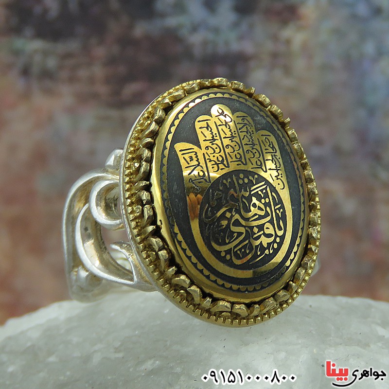 انگشتر حدید طلایی با نقش کف العباس _کد:28200