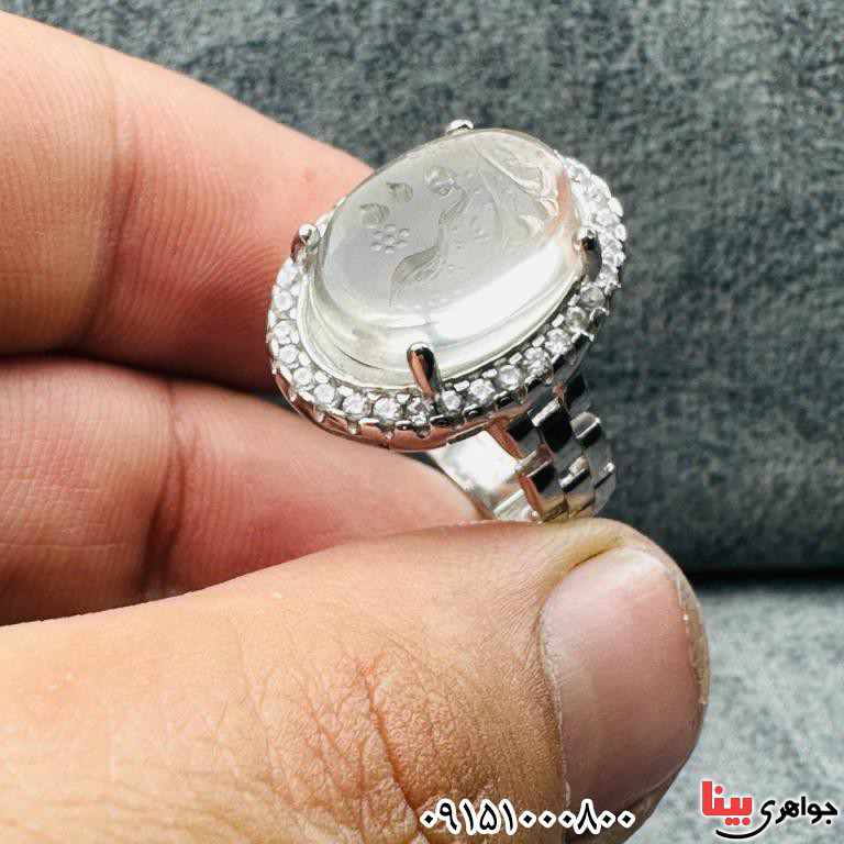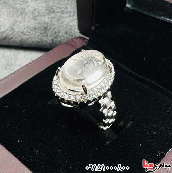 انگشتر در نجف خطی رودیوم زیبا با حکاکی یا رقیه _کد:33073