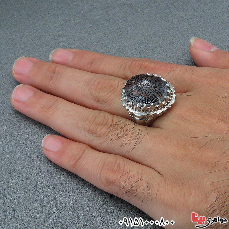 انگشتر در نجف مردانه درشت حکاکی چهارده معصوم مدل دور چنگ _کد:13694