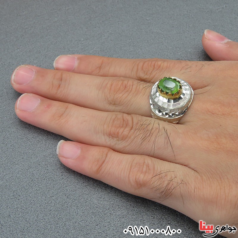 نگین انگشتر زبرجد بسیار خوشرنگ - انگشتری زیبا و خاص مناسب آقایان خوش سلیقه - انگشتر درشت و با کیفیت - با امکان صدور شناسنامه - (خواص زبرجد : از بین برنده غم، افسردگی، نفرت و حسادت - افزایش شانس و درآمد - تسکین دردهای استخوانی و ناراحتی های کبدی و ... ) -