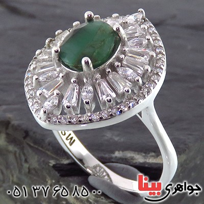 انگشتر زمرد درشت زنانه رودیوم مدل بادامی _کد:14278