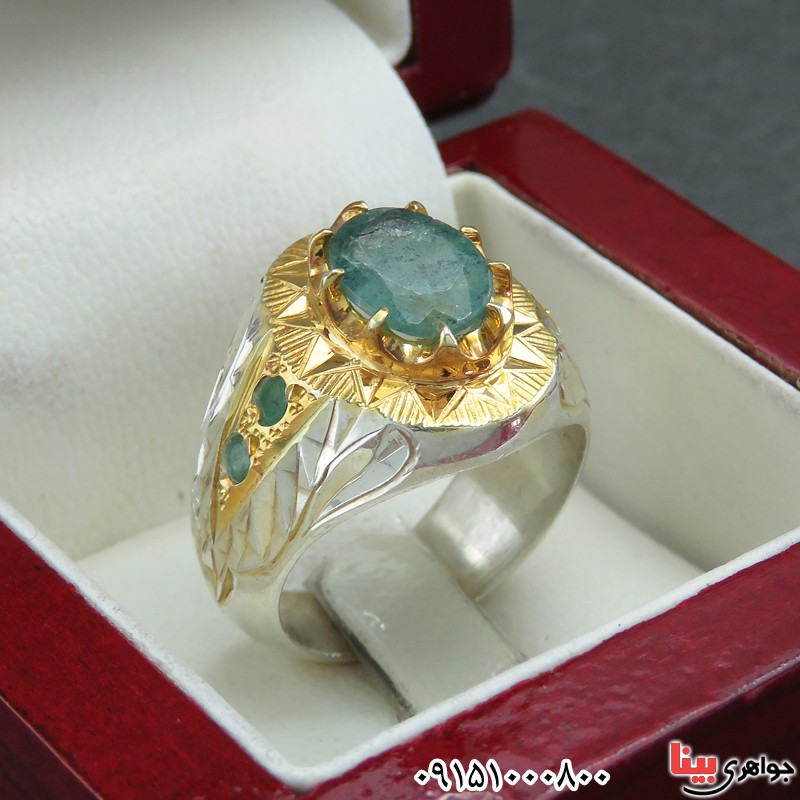 نقره 925 عیار - نگین انگشتر زمرد خوشرنگ بسیار عالی - انگشتری فاخر و باشکوه مناسب آقایان خوش سلیقه - ( خواص زمرد : مظهر فراوانی و ثروت ، پیوندزوجین ، آسانی کارها و گره گشایی ، درمان پارکینسون (لرزش) و ناراحتی های عصبی ) - انگشتر درشت و سنگین دست ساز و خاص - 4 نگین زمرد نیز به زیبایی روی رکاب انگشتر مخراج کاری دستی شده است - نگین این انگشتر زمرد، معدنی اصلی میباشد - نگین انگشتر با تراش برلیانی - وزن: حدود 14/6 گرم - طرح روی رکاب آینه کاری می باشد - سری: 14011208/10**M S:1