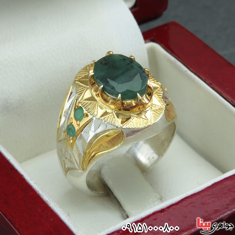 انگشتر زمرد مردانه درشت فاخر دست ساز _کد:29285