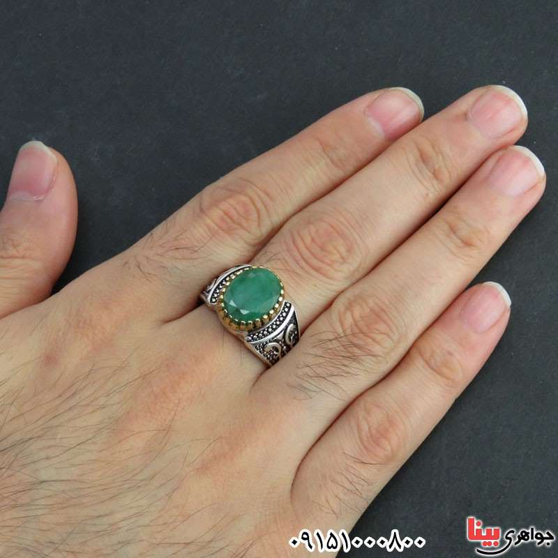انگشتر زمرد مردانه فاخر و خاص خوشرنگ _کد:۳۱۲۰۹