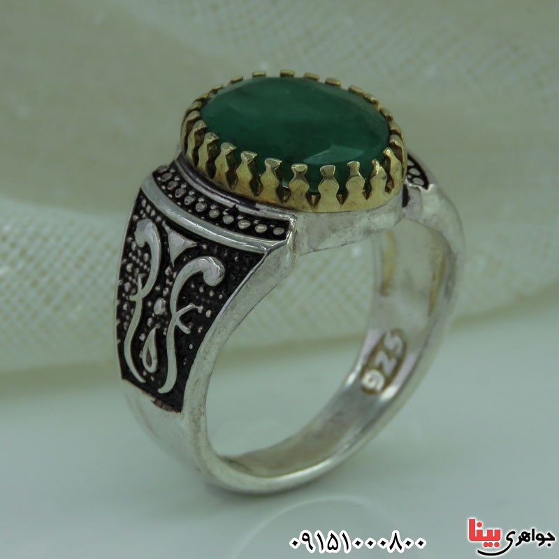 نقره 925 عیار - نگین انگشتر زمرد خوشرنگ عالی - انگشتری زیبا مناسب آقایان خوش سلیقه - ( خواص زمرد : مظهر فراوانی و ثروت ، پیوندزوجین ، آسانی کارها و گره گشایی ، درمان پارکینسون (لرزش) و ناراحتی های عصبی ) - انگشتر فاخر و خاص - نگین این انگشتر زمرد، معدنی اصلی میباشد - نگین انگشتر با تراش برلیانی - وزن: حدود 10/3 گرم - سری: 14020816/11**M S:1