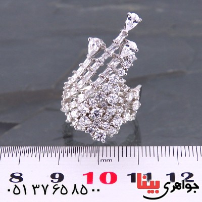 انگشتر زیرکن (زرقون) زنانه رودیوم درشت مدل هیوا _کد:13607