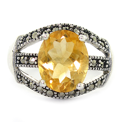 نقره 925 عیار - نگین انگشتر سیترین خوشرنگ، مرغوب و شفاف - رکاب انگشتر به سبک مارکازیتی حدید کاری شده است - سیاه قلم کاری شده - انگشتری بسیار زیبا و جذاب مناسب بانوان خوش سلیقه - انگشتر سیترین مارکازیتی - نگین این انگشتر سیترین، معدنی اصلی میباشد - نگین انگشتر با تراش برلیانی - طرح روی رکاب حدید کاری مارکازیتی می باشد - سبک مارکازیت هانگ - سری: 940312 S:0