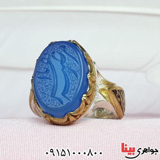 انگشتر عقیق آبی خطی با حکاکی یا زهرا مرضیه زیبا _کد:32965