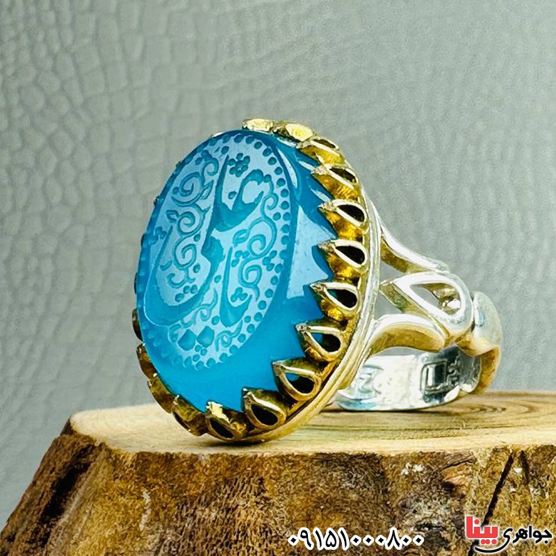 انگشتر عقیق آبی خطی با حکاکی یا علی _کد:33594