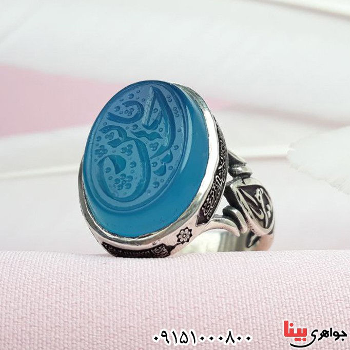 انگشتر عقیق آبی خطی خوشرنگ با حکاکی یا حسین _کد:۳۳۵۶۲