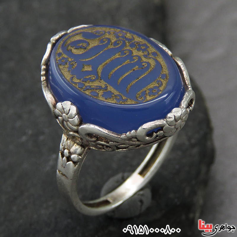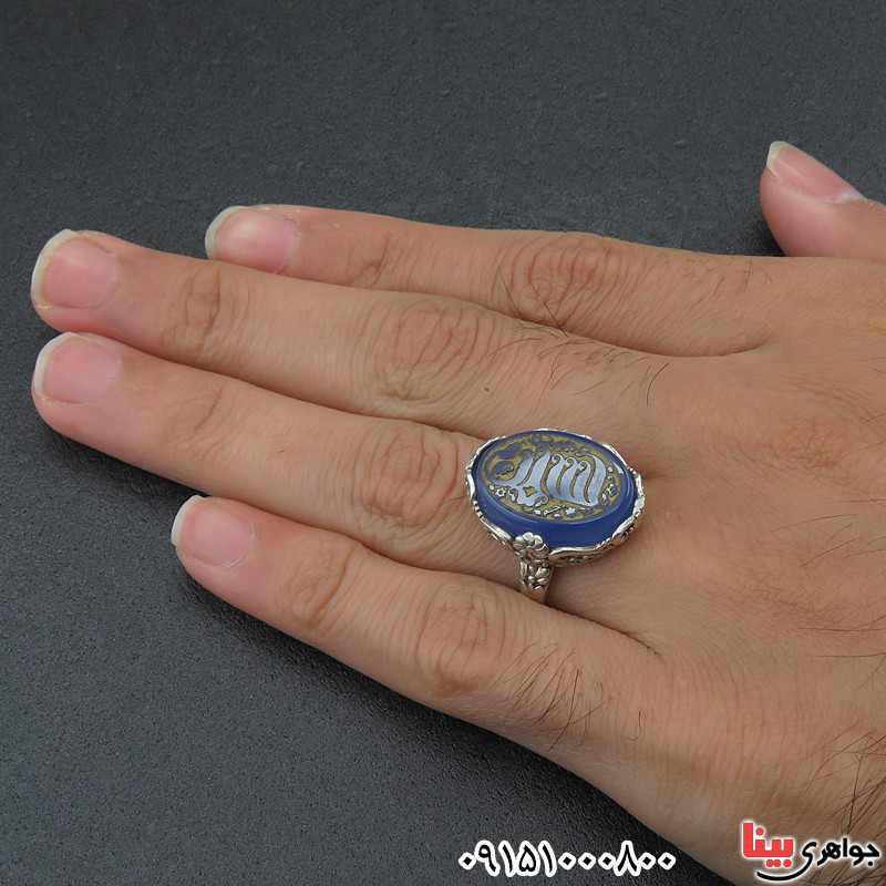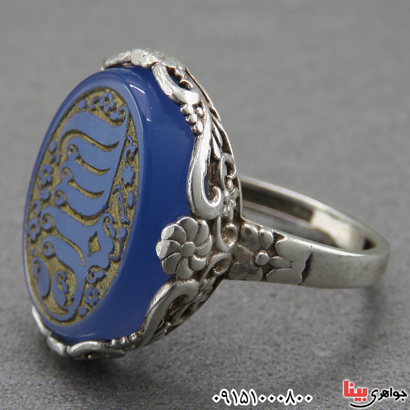 انگشتر عقیق آبی مردانه خوشرنگ با حکاکی الله _کد:26882