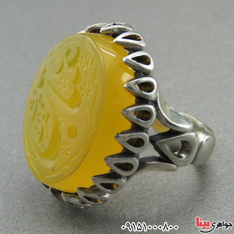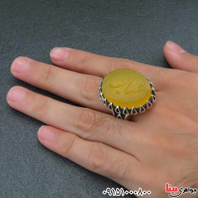 انگشتر عقیق زرد خطی درشت فاخر با حکاکی عباس قمر بنی هاشم _کد:27689