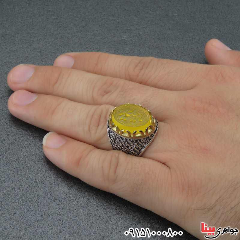 انگشتر عقیق زرد خوشرنگ با حکاکی یا حیدر _کد:27139