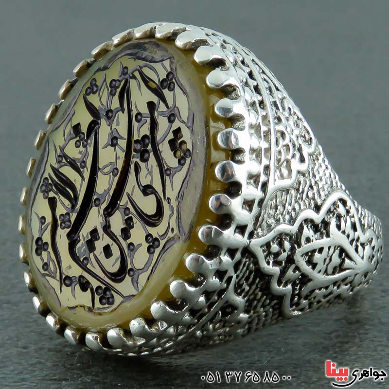 انگشتر عقیق زرد شرف الشمس با حکاکی امیری حسین ونعم الامیر _کد:22463