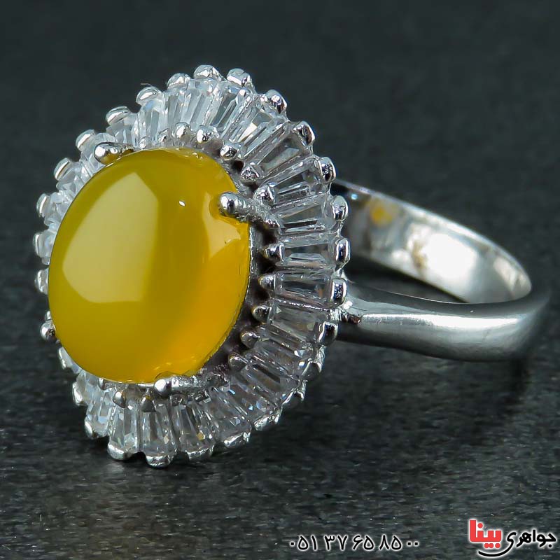 انگشتر عقیق زرد شرف الشمس رودیوم زنانه بسیار زیبا _کد:۲۲۵۶۴