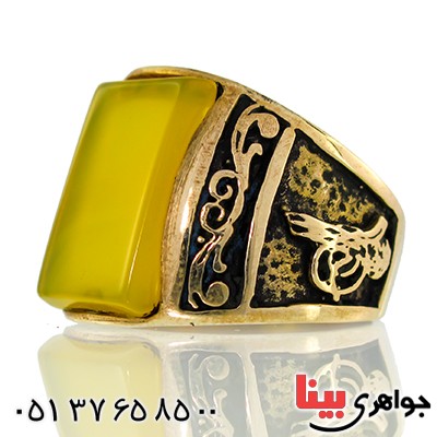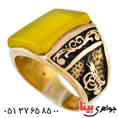 انگشتر عقیق زرد مردانه طرح بسم الله _کد:9637