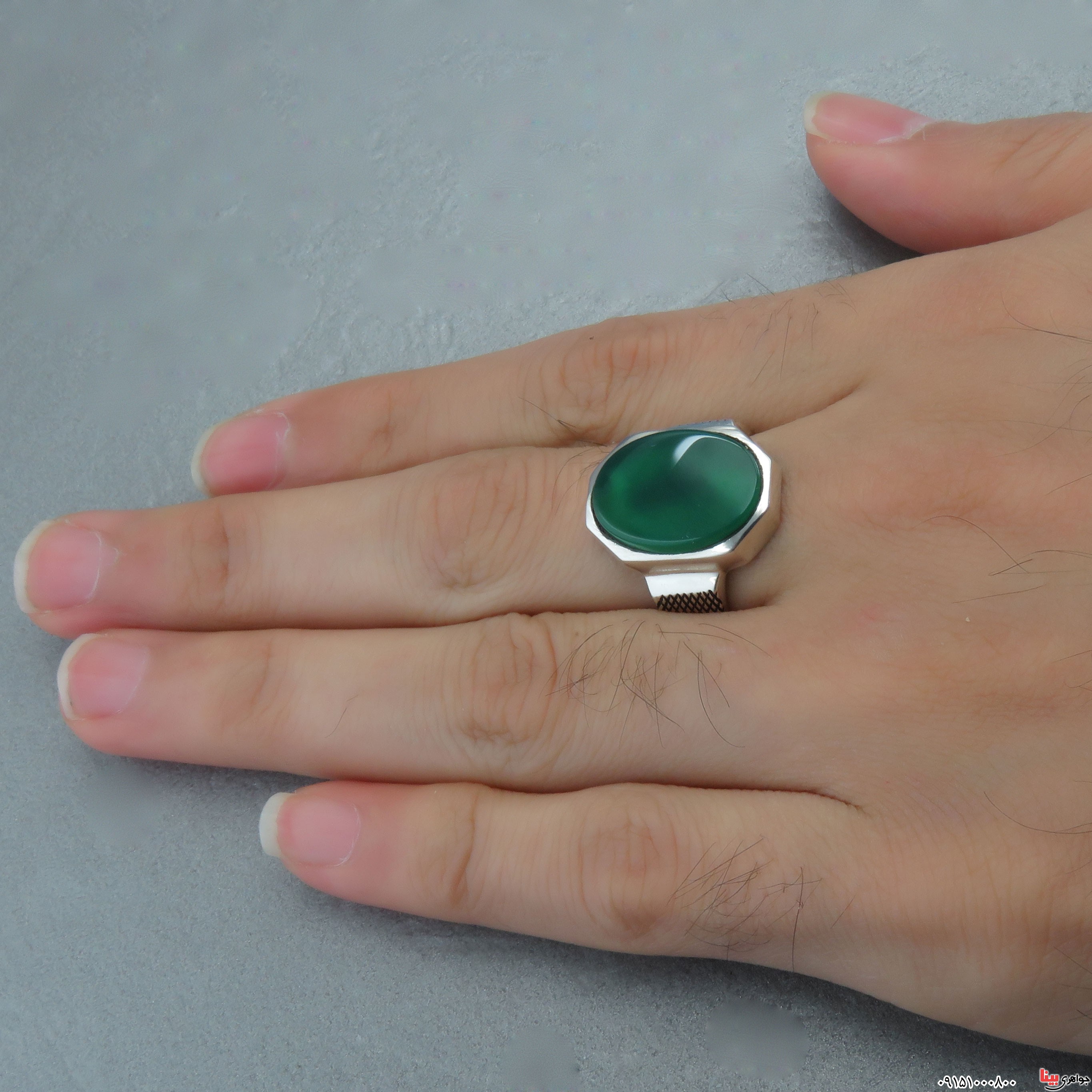 نقره 925 عیار - انگشتر عقیق سبز فوق العاده زیبا - انگشتری زیبا و شیک مناسب آقایان خاص پسند - (خواص عقیق : افزایش رزق و روزی ، دفع بلا ، افزایش طول عمر ، رفع غم و ... ) - انگشتر پشت بسته حرز دار - نگین این انگشتر عقیق سبز، معدنی اصلی میباشد - نگین انگشتر با تراش بیضی - وزن: حدود 8/1 گرم - سری: 14020129/6**M S:1