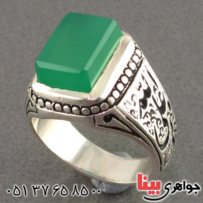 نقره 925 عیار - نگین انگشتر عقیق سبز خوشرنگ - انگشتر محکم و بادوام - طرح رکاب علی ولی الله - انگشتر مناسب آقایان خوش سلیقه - انگشتر دست ساز - انگشتر درشت و سنگین با کیفیت بسیار عالی - نگین این انگشتر عقیق سبز، معدنی اصلی میباشد - نگین انگشتر با تراش مستطیلی - وزن: حدود 17 گرم - طرح روی رکاب سیاه قلم کاری شده می باشد - سری: 970925/1 S:0