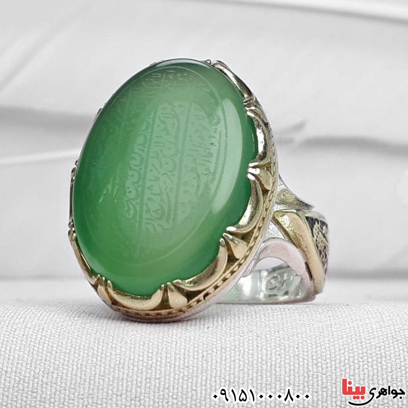 انگشتر عقیق سبز خطی درشت با حکاکی آیت الکرسی _کد:۳۱۰۲۱