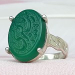 نقره 925 عیار - نگین انگشتر عقیق سبز خطی فوق العاده زیبا و خوشرنگ - انگشتر درشت و سنگین با حکاکی زیارت عاشورا ، مناسب آقایان خاص پسند - (خواص عقیق : افزایش رزق و روزی ، دفع بلا ، افزایش طول عمر ، رفع غم و ... ) - نگین این انگشتر عقیق سبز، معدنی اصلی میباشد - نگین انگشتر با تراش بیضی - وزن: حدود 15/2 گرم - طرح روی رکاب یا علی ابن موسی الرضا می باشد - سری: 14020922/31*.. S:1