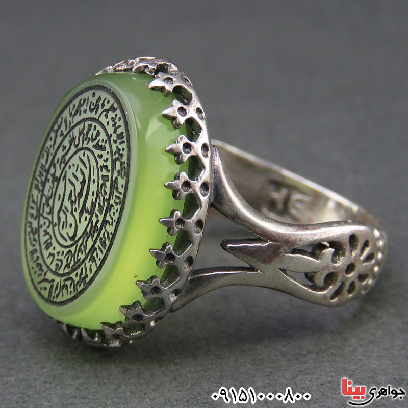 انگشتر عقیق سبز خوشرنگ مردانه با حکاکی آیت الکرسی _کد:26478
