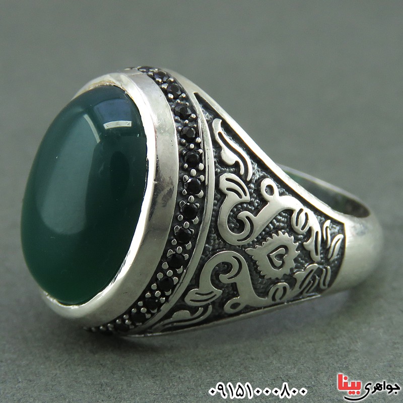انگشتر عقیق سبز خوشرنگ و خاص مردانه _کد:26153