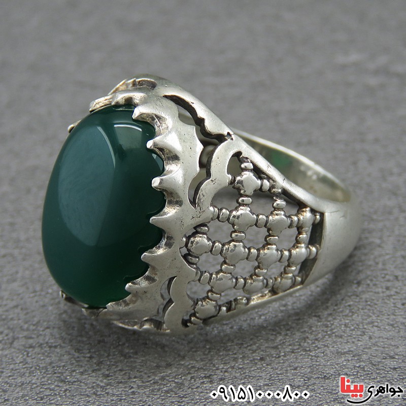 انگشتر عقیق سبز مردانه با رکاب ضریح _کد:28589