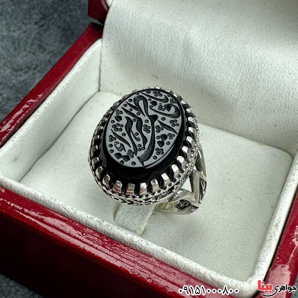 انگشتر عقیق سیاه (اونیکس) خطی زیبا با حکاکی یا فاطمه الزهرا _کد:33279