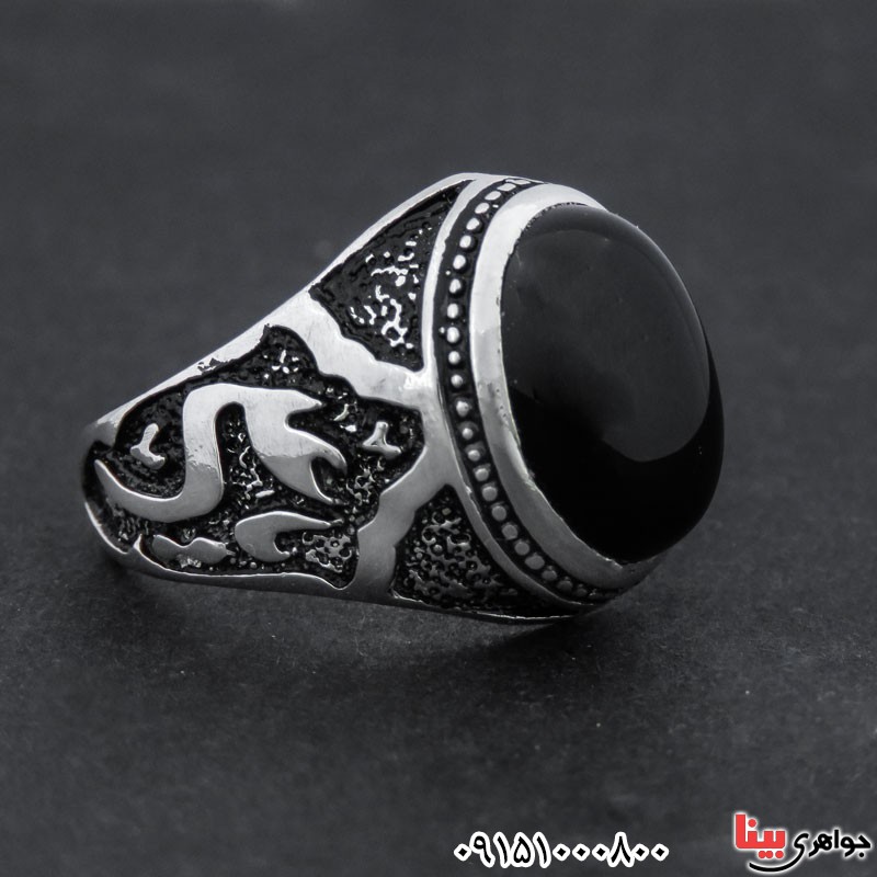 نقره 925 عیار - نگین انگشتر عقیق سیاه(اونیکس) با کیفیت و خاص - انگشتر خوش ساخت، بادوام و ضخیم - ویژه آقایان خوش سلیقه - (خواص عقیق : افزایش رزق و روزی، دفع بلا، افزایش طول عمر و ... ) - نگین این انگشتر عقیق سیاه (اونیکس)، معدنی اصلی میباشد - نگین انگشتر با تراش بیضی - وزن: حدود 9 گرم - طرح روی رکاب یا علی می باشد - سری: 14020721/55**M S:5