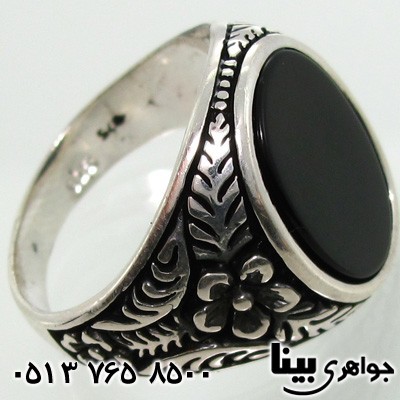 نقره 925 عیار - عقیق سیاه - سایز نگین درشت - رکاب پهن و درشت - سبک سیاه قلم - با نقش زیبای گل و شاخه - طرحی زیبا - متناسب با هر سنی - انگشتر مردانه
