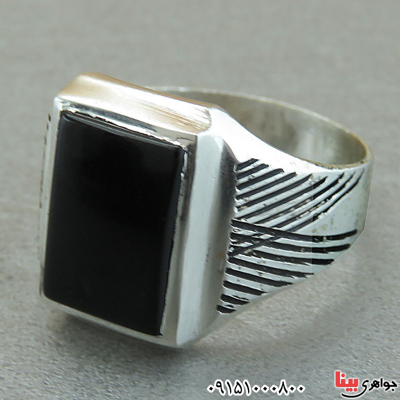 انگشتر عقیق سیاه (اونیکس) عالی مردانه شیک حرز دار _کد:۲۹۵۷۳