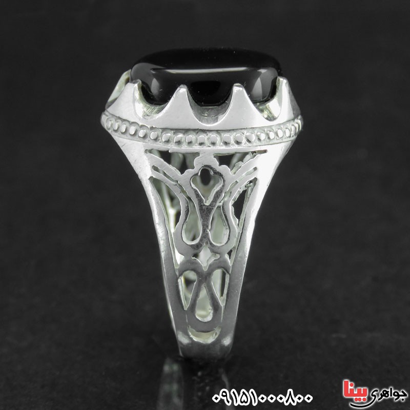 انگشتر عقیق سیاه (اونیکس) مردانه دور چنگی _کد:۱۵۴۷۷