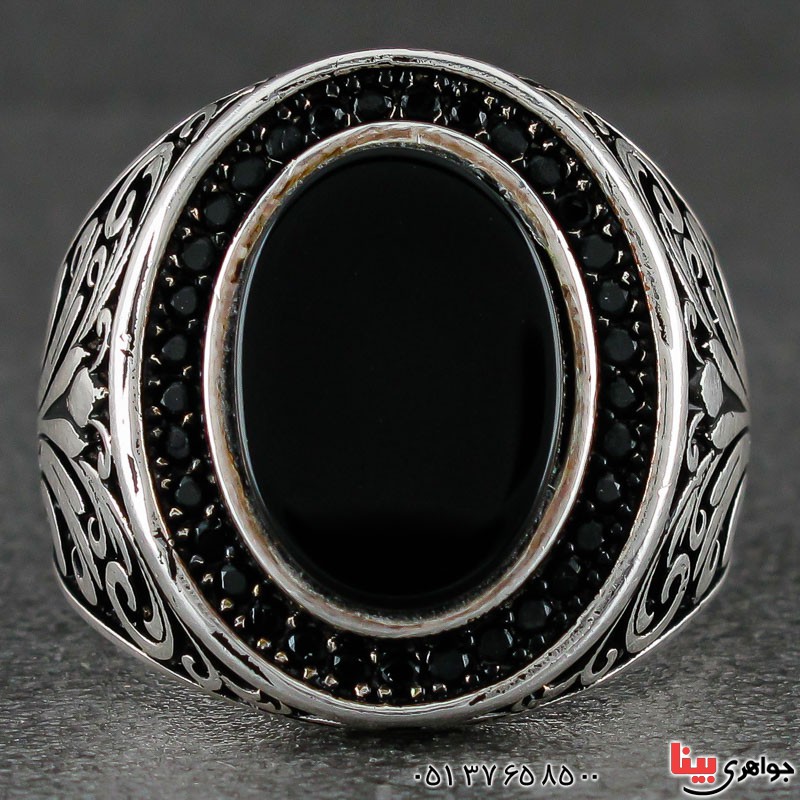 انگشتر عقیق سیاه (اونیکس) مردانه مدل میکروستینگ _کد:21338
