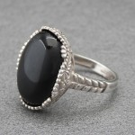 نقره 925 عیار - نگین انگشتر عقیق سیاه خوشرنگ - انگشتر با رکابی محکم و بادوام با قیمتی بسیار مناسب - مناسب آقایان با سلیقه - نگین این انگشتر عقیق سیاه (اونیکس)، معدنی اصلی میباشد - نگین انگشتر با تراش دامله - وزن: حدود 6 گرم - طرح روی رکاب خطی سیاه قلم کاری شده می باشد - سری: 970126/80 S:6