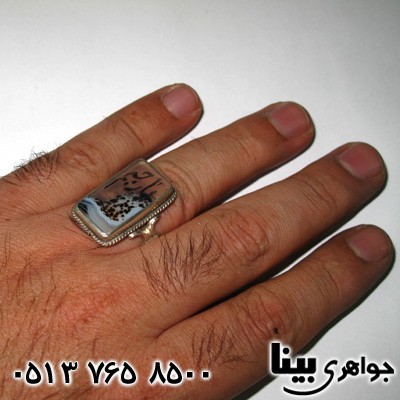 نقره 925 عیار - سنگ عقیق شجری - سایز نگین درشت - با حکاکی ذکر یا رحیم - رکاب انگشتر دست ساز و ضخیم - حکاکی ذکر بر روی نگین عقیق شجری، کاری خلاقانه و نادر می باشد - انگشتری ساده، شیک ، درشت با جلوه ای بالا و خاص می باشد - رکاب انگشتر سنتی و طرح صفوی - انگشتر مردانه