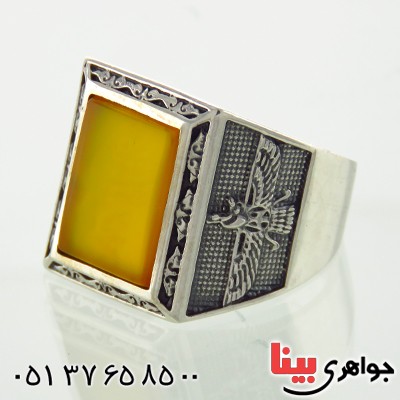 انگشتر عقیق شرف الشمس درشت و سنگین طرح فروهر _کد:12927