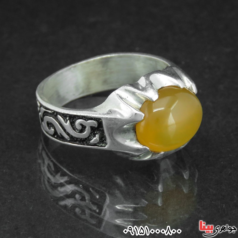 انگشتر عقیق شرف الشمس مردانه اسلیمی سیاه قلم کاری _کد:۱۵۴۰۰
