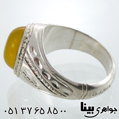 نقره 950 عیار - تک -نگین عقیق شرف الشمس بسیار عالی و درجه یک با حکاکی دعای شرف الشمس - انگشتر دست ساز - مخراج کاری فیلی ساده - انگشتر مردانه سنگین و درشت و کلاسیک به همراه تربت کربلا و حرز امام جواد - پشت نگین بسته است - سفارش جواهری بینا - انگشتر عقیق شرف الشمس مردانه . سری :930620
