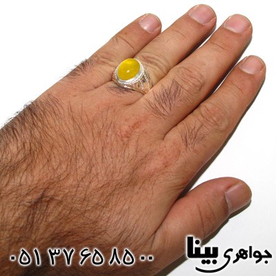 انگشتر عقیق شرف الشمس مردانه طرح خط و نقطه کلاسیک
