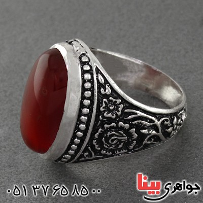 انگشتر عقیق قرمز خراسانی مردانه طرح قلم زنی _کد:۱۵۴۰۶