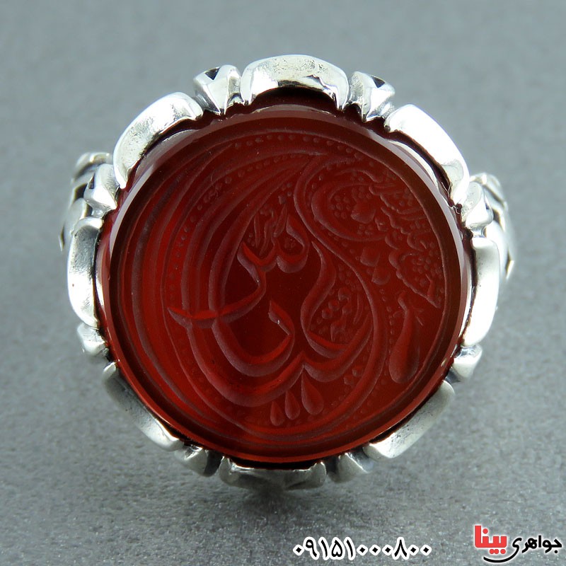 انگشتر عقیق قرمز خطی خوشرنگ و خاص مردانه _کد:23847