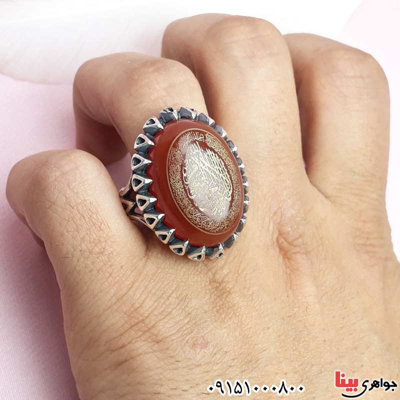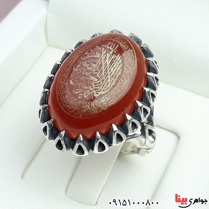 انگشتر عقیق قرمز خطی درشت با حکاکی آیت الکرسی _کد:۳۱۳۰۲