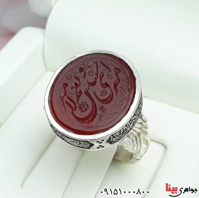انگشتر عقیق قرمز خطی دست ساز پشت بسته با حکاکی _کد:32785