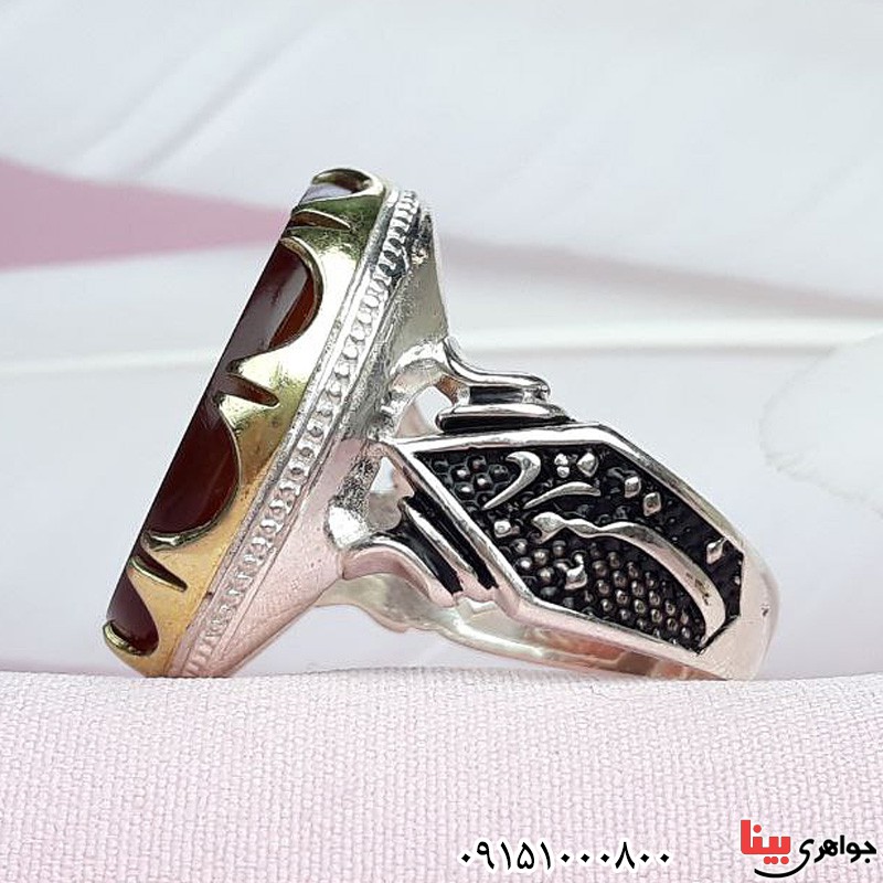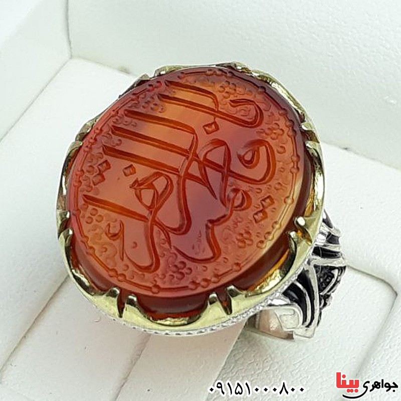 انگشتر عقیق قرمز خطی دو رنگ با حکاکی یا فاطمه الزهرا _کد:31881